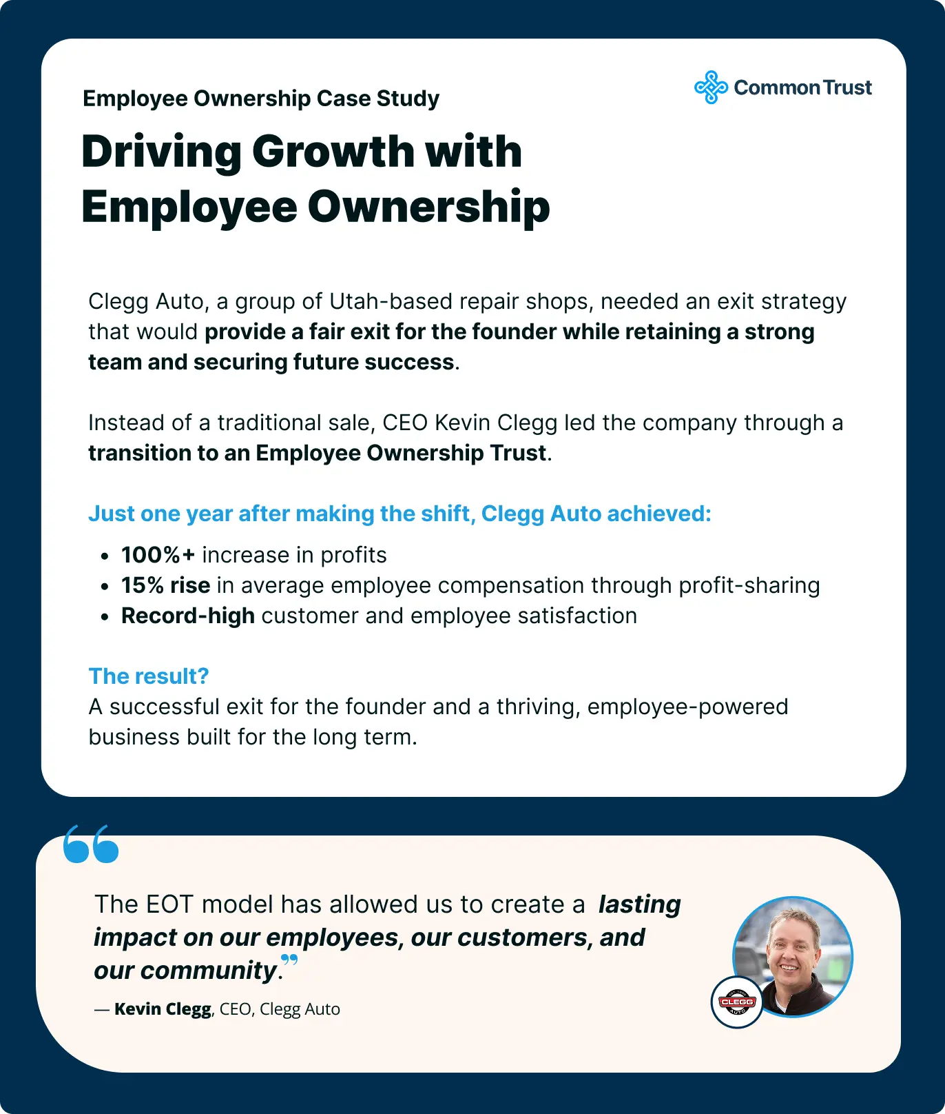 "Ownership unleashes the care factor — when people care more, every bit of what you do gets better." — Kevin Clegg, CEO, Clegg Auto